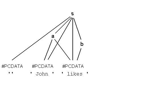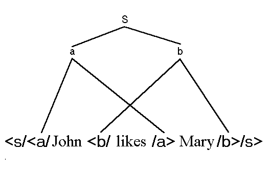 <s/<a/ John <b/ likes /a> Mary /b>/s>we will process, in turn, eleven segments: