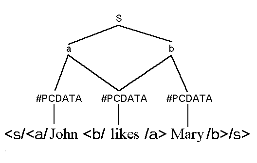 <s/<a/ John <b/ likes /a> Mary /b>/s>